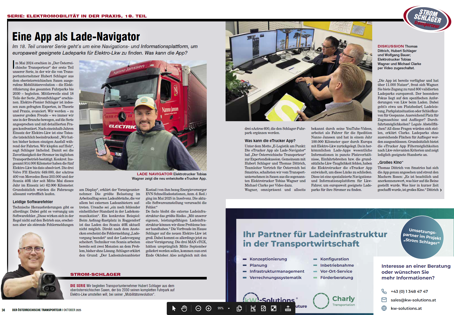 Der zweite der der E-Mobilitätsserie im "Der österreichische Transporteur" erstreckt sich bereits über fünf Seiten!