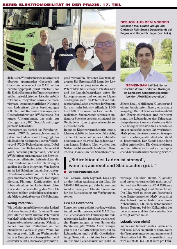 Fokus diesmal: Bidirektionales Laden – noch Zukunft, aber für uns als innovatives Transportunternehmen längst ein Thema von heute.