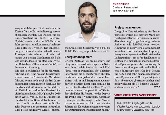 Fokus diesmal: Bidirektionales Laden – noch Zukunft, aber für uns als innovatives Transportunternehmen längst ein Thema von heute.
