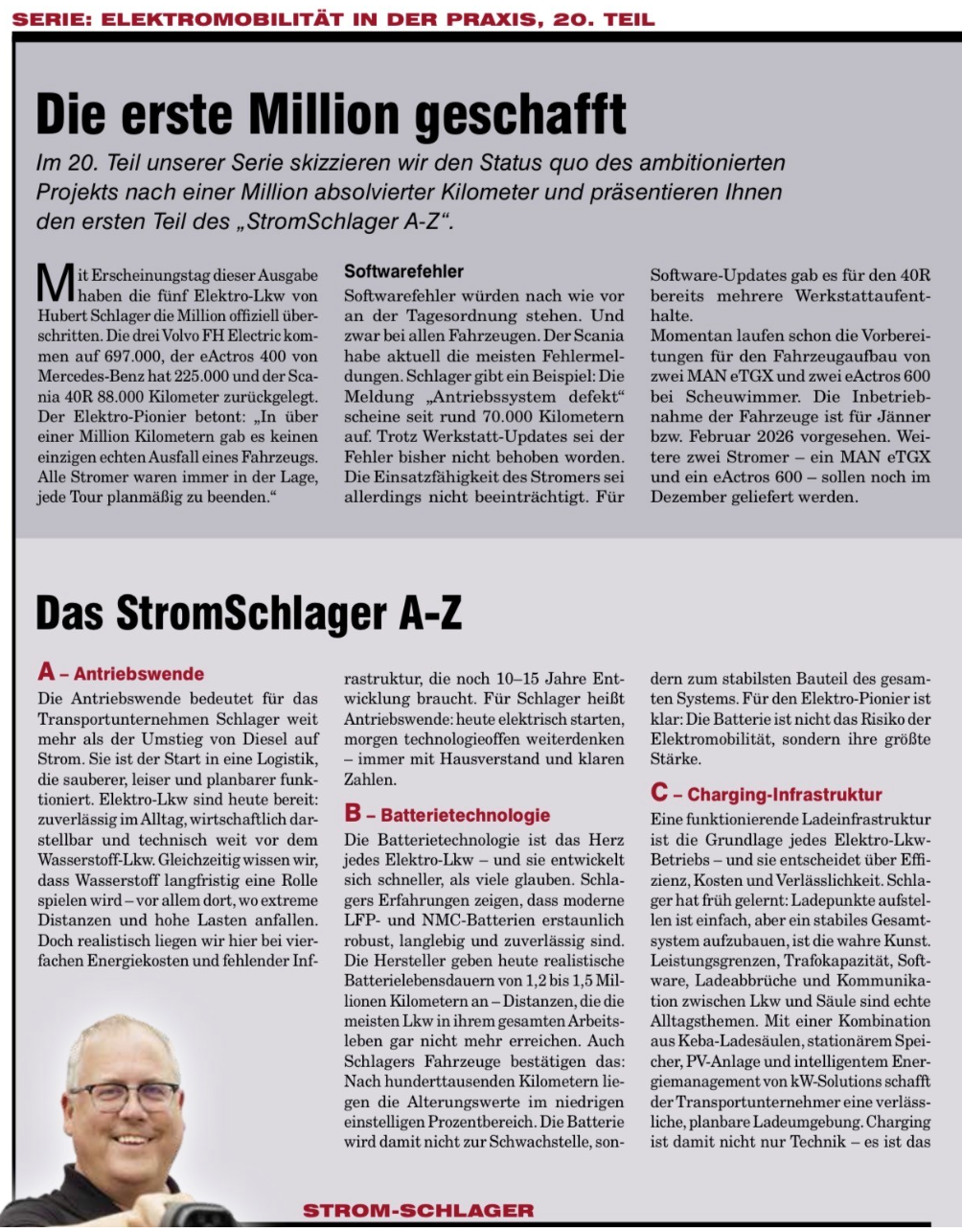 In der aktuellen Ausgabe von Der Österreichische Transporteur erscheint der 20. Teil unserer Serie StromSchlager.